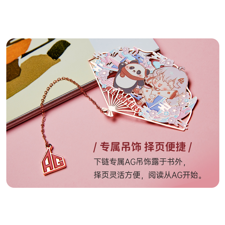 AG 官银小满阿银金属书签 镂空扇形长链条logo吊坠